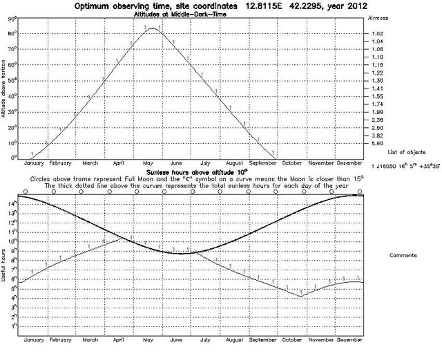 I mesi che verranno sono i più idonei all’osservazione di questo oggetto, che avrà la sua massima altezza al meridiano, nei giorni centrali del mese di Maggio (vedi allegato).
